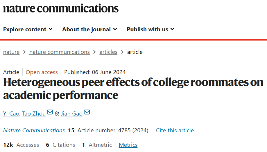 近期,香港大学/美国西北大学高见及电子科技大学周涛共同通讯在Nature Communications 在线发表题为“Heterogeneous peer effects of college roommates on academic performance”的研究论文,该研究基于零模型和回归方法,利用5272名本科生的纵向数据来检验同伴效应,其中室友分配在入学时是随机的,室友关系一直持续到毕业。具体来说,作者通过在宿舍间随机安排学生比对来构建室友零模型,并引入同化指标来量化室友学业表现的相似性。